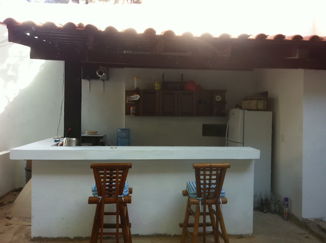I bought some bamboo chairs for the undercover area and my mum made the cushions for them so we now have somewhere to sit outside. We also finished off the outside kitchen – well I say finished the floor and tiling needs to be completed but at least it is fully functional now.