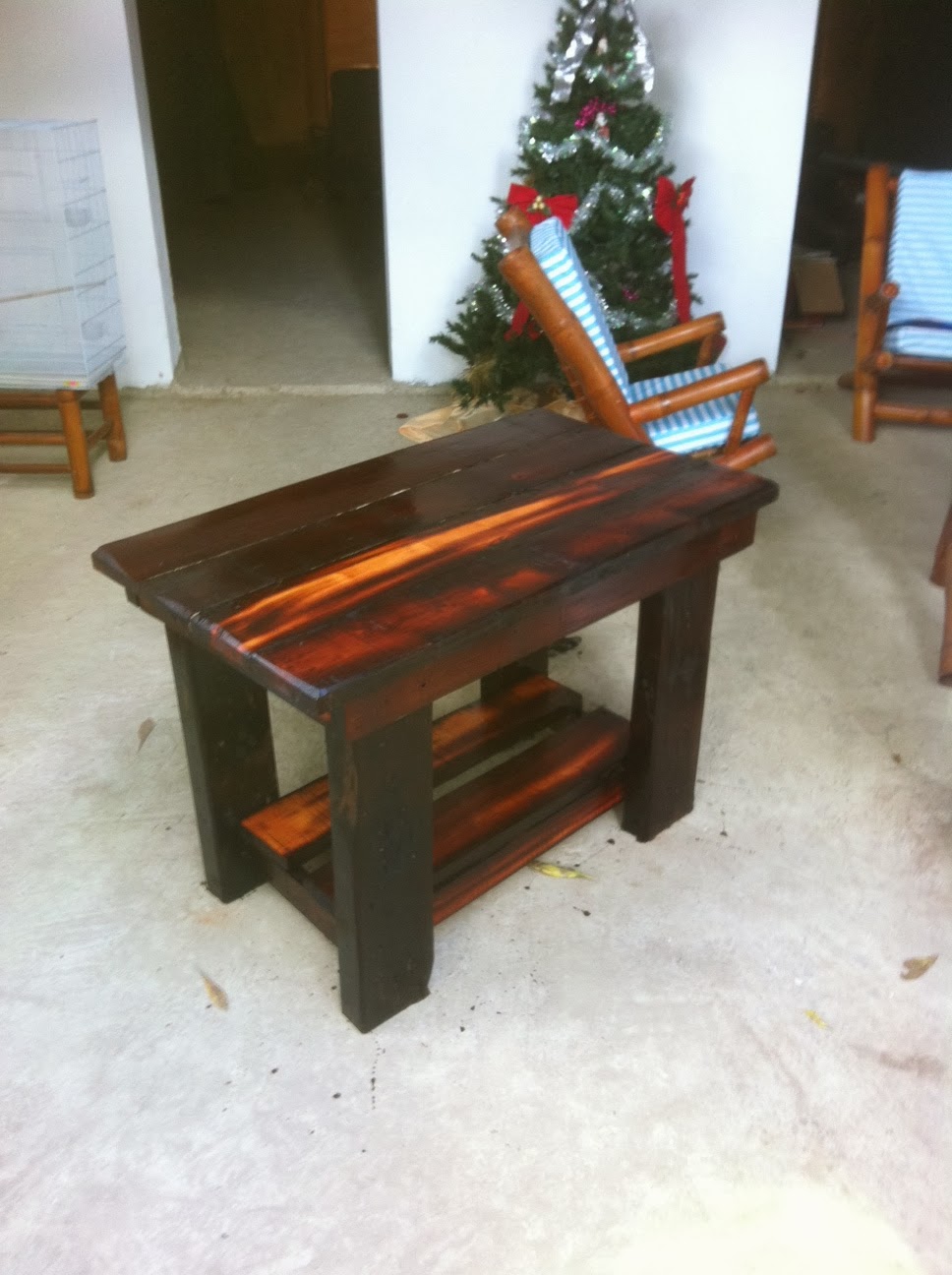 I was practicing on this table as I plan to make a lot more for the furniture around the property. Not bad for a first attempt a furniture making – I love the way the wood looks.