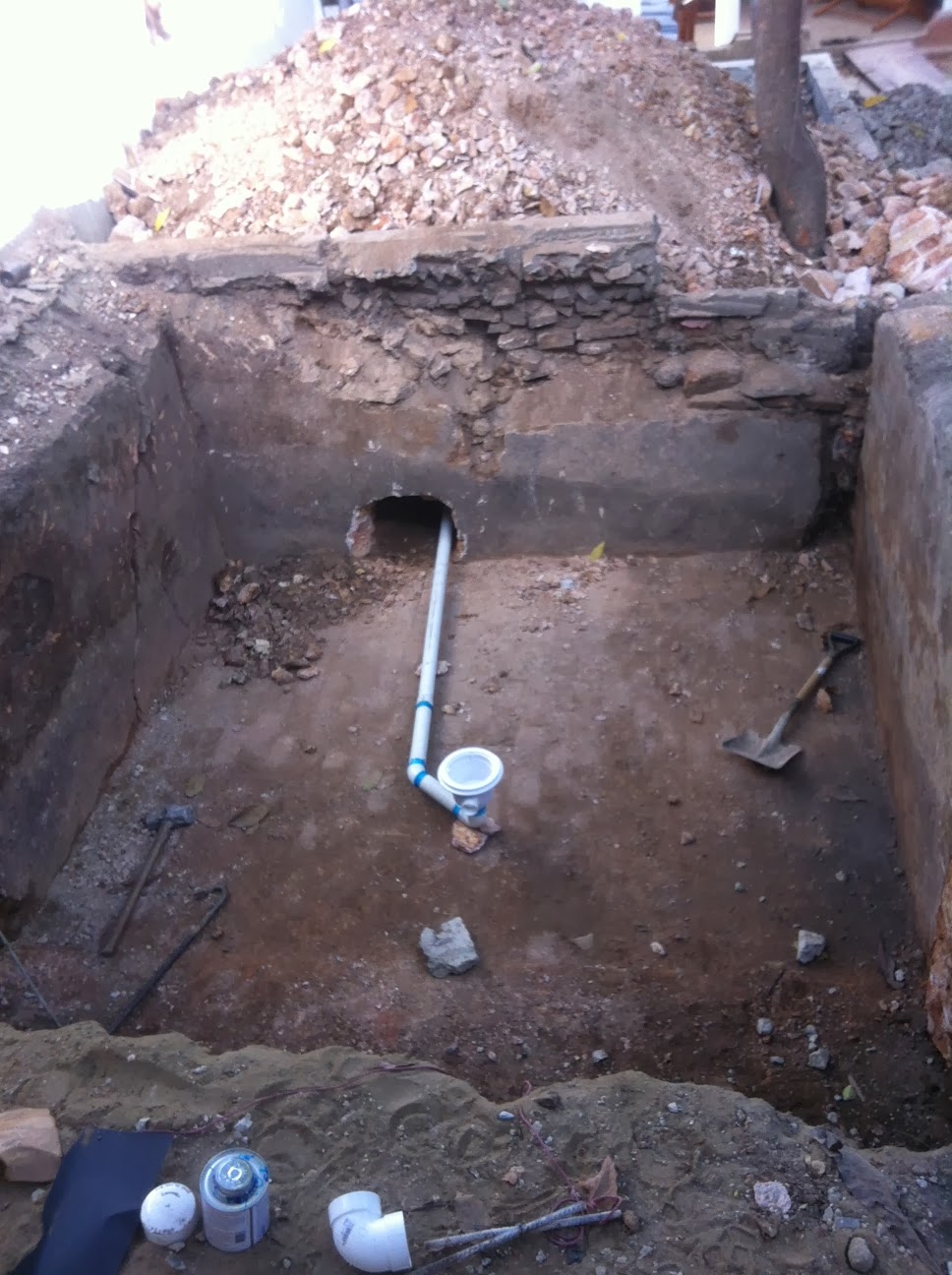 The hole is about 10 ft by 12ft, obviously the Jacuzzi will be smaller by the time I add the walls etc but it will still have ample room for 6 or so people. I have been meaning to sit down and plan it all out but I have been so busy I think this will be one of the day by day jobs. I have got the floor drain connected so tomorrow they will be laying the base for the tub. I think I have everything I need – jets etc so i am hoping this doesn’t take much more than a week to complete.