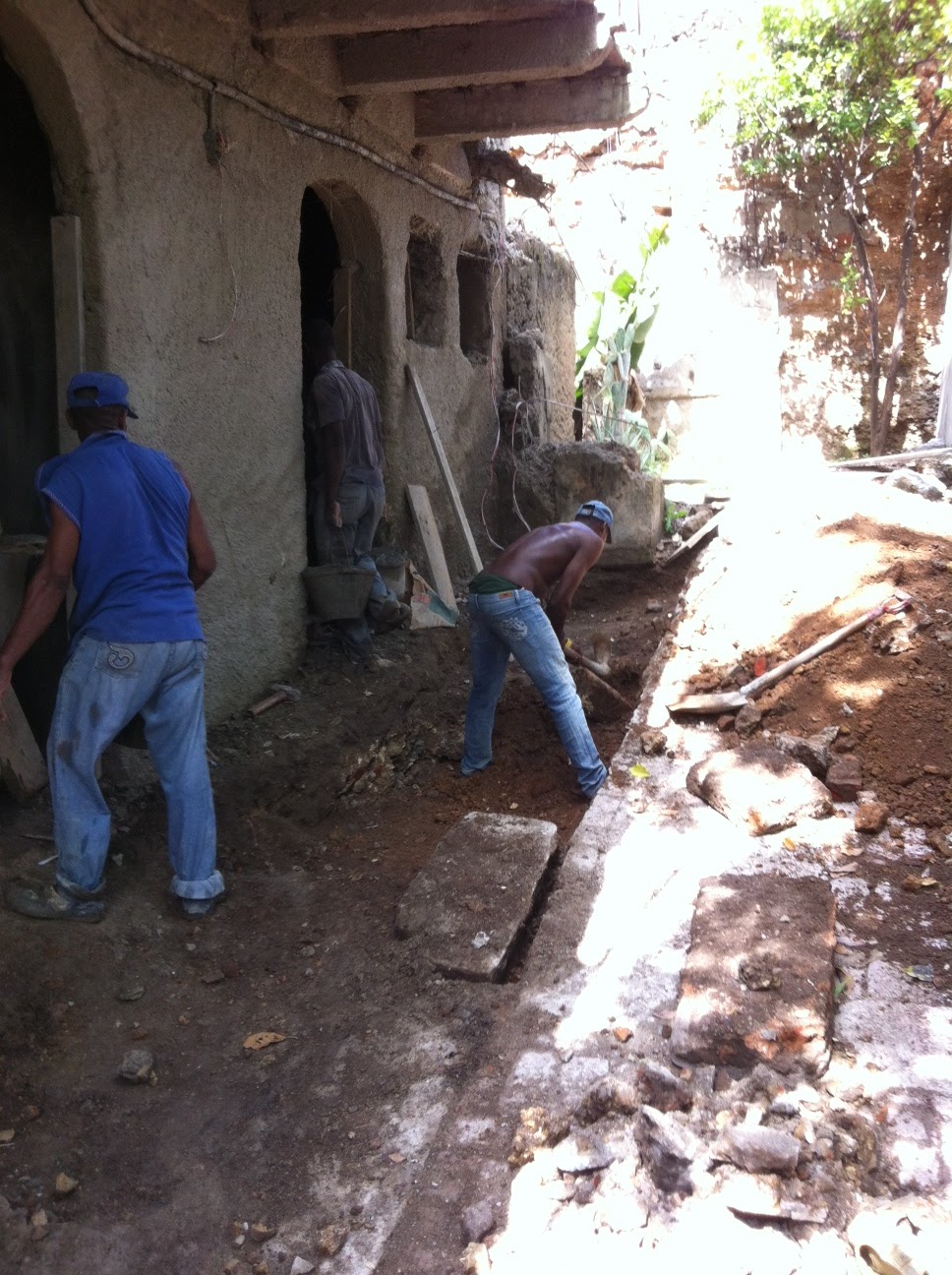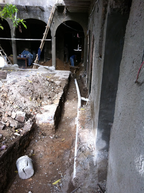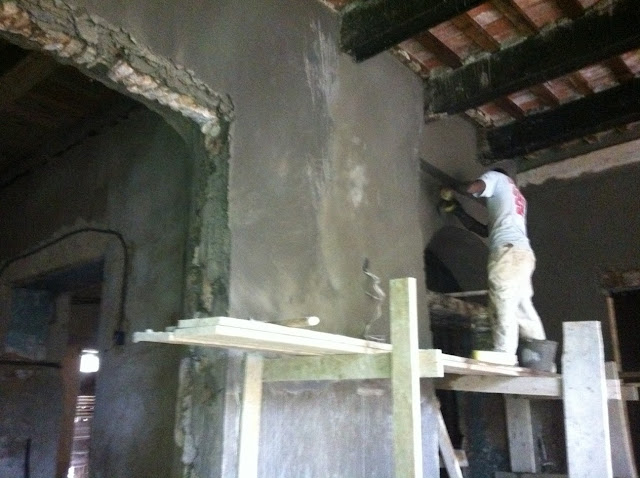 I got an extra guy in to dig up all the channels for the new pipes as I didn’t want to slow down my guys doing the plastering. They have finished in the inside downstairs and have just started to do the outside under the arches. The ceilings are so high it makes me want to cry when I see how much cement I go through a day… but the good news is I am about two thirds done with the walls – I cannot wait to to finish them all.