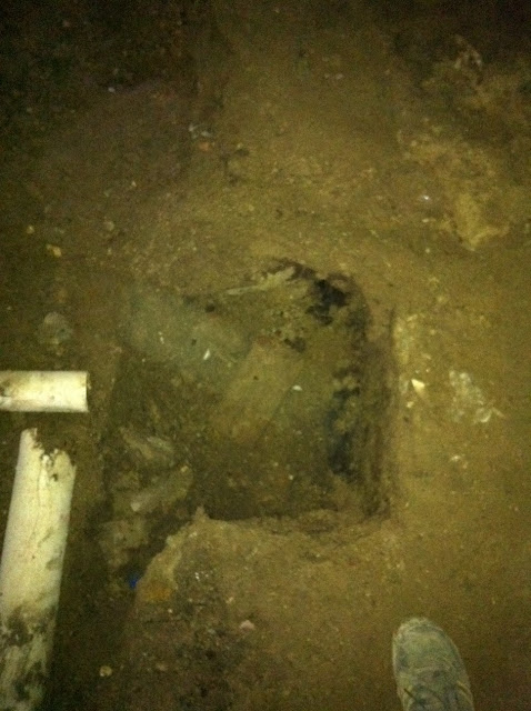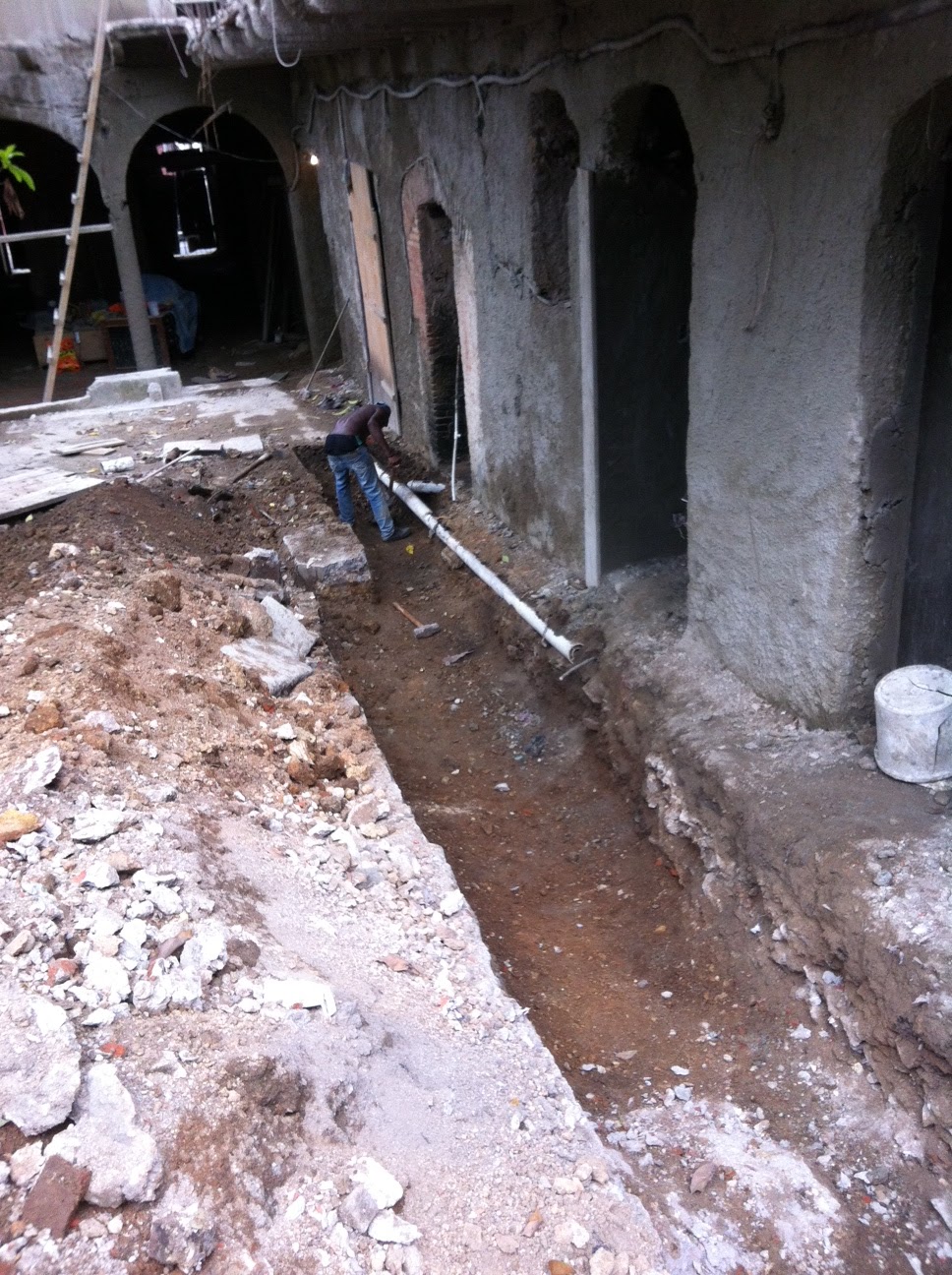 My original plan was to install a 6 inch pipe down the length the of the property and tie in all the 4 inch wastage pipes from the bathrooms and drains. All looked good on paper… However when I got to digging up the collapsed inspection pit – which is inside the house I might add – I found the old clay pipe that connects the main sewage line under the street outside. Now the good news is that it seems to be all in tact but the bad news is that it is only 4 inches…